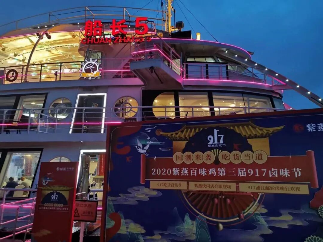 在内容上,为了体现“国潮来袭,吃货当道”为主题的川渝文化,现场的游轮将分三层不同的场景体验。第一层是国潮场景体验,有川剧变脸、国潮汉服体验区、亲子脸谱DIY等,届时还将为参加活动的宾客准备紫燕特色卤味和自助餐共享美味;第二层是四川特色场景体验,有古筝等表演供来宾欣赏,第三层将搭建国潮风主舞台,在这有网红直播和现场抽奖活动。