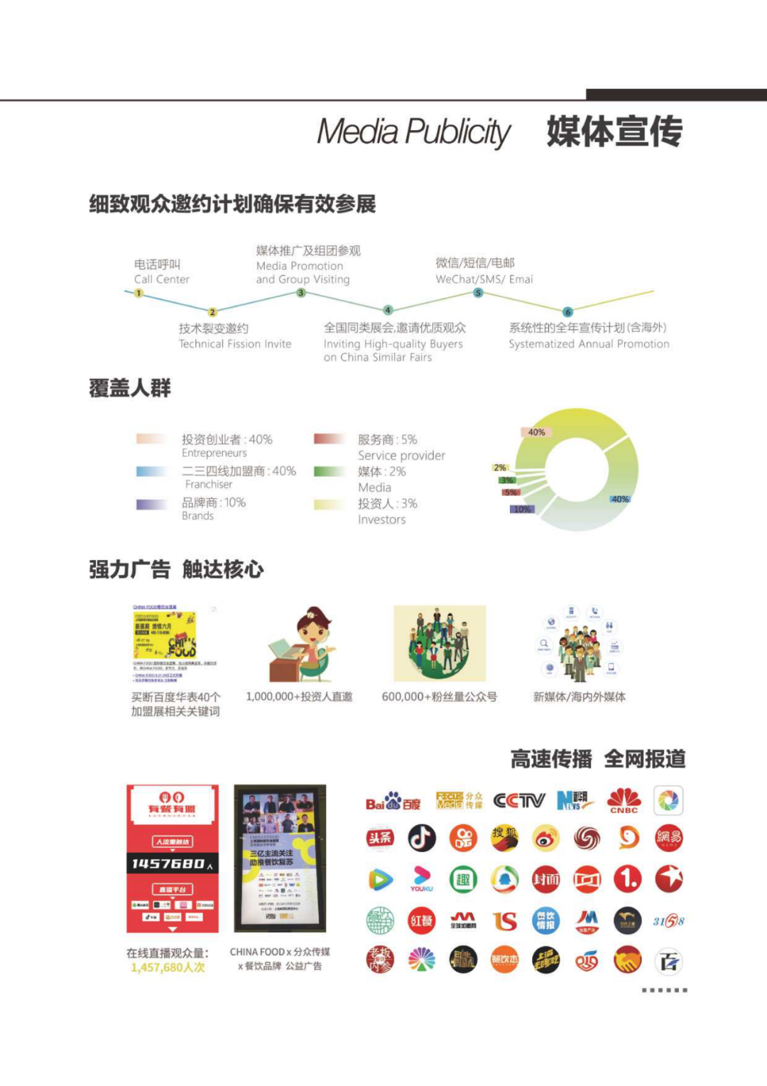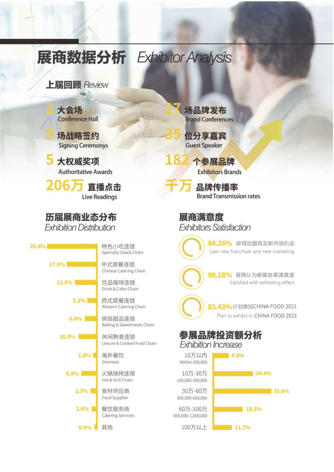 2、观众质量:除了小白创业者之外,城市加盟商、区域代理商、联营合伙人等企业级投资人将使加盟更具成效。CHINA FOOD精准餐饮领域,观众以及投资人邀约更加围绕餐饮人,人群更加精准。