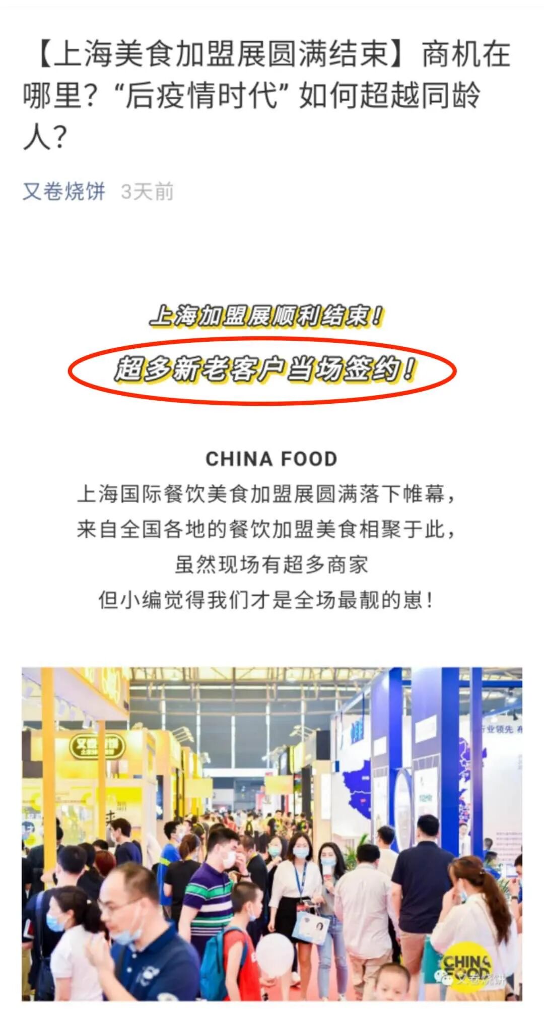 [温馨提示] 文章来源于CFA上海餐饮加盟展公众号,转载注明原文出处,此文观点与查生意无关,理性阅读,版权属于原作者若无意侵犯媒体或个人知识产权,请联系我们,本站将在第一时间删掉 ,查生意仅提供信息存储空间服务。