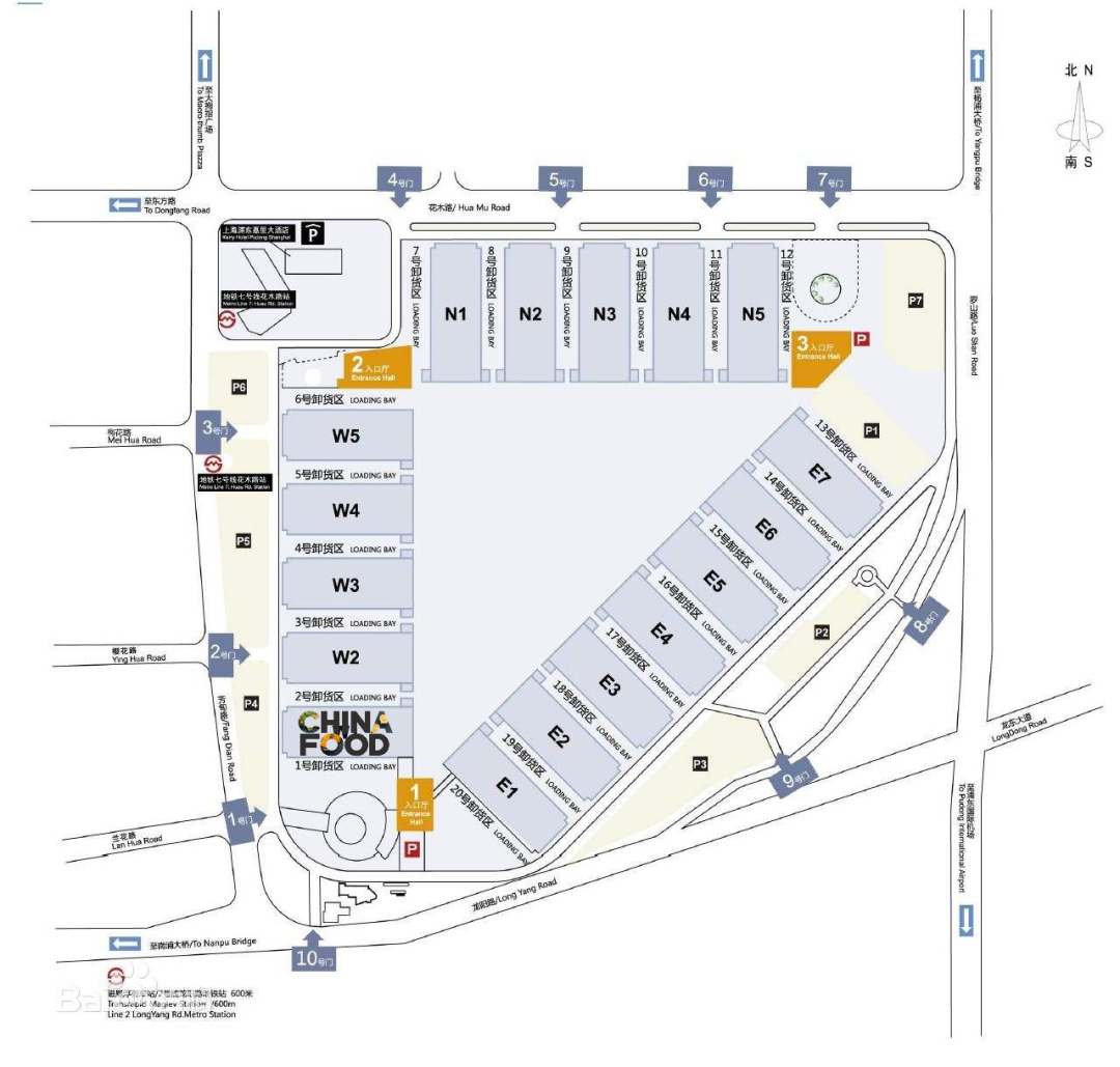 南入口(w2馆):P4、P5停车场:导航软件搜索目的地:“上海新国际博览中心W2号门”,从芳甸路1、2(最近)、3号门皆可进入,听从保安指挥到达P4、P5停车场。