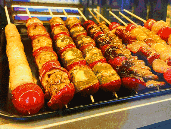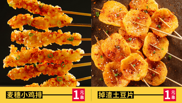 夸父炸串的原料都是先经过几十种调料,然后油炸而成。在刷上各种不同的调味酱,鲜美润滑、油而不腻。本品可现场加工、现做现卖、即买即食。诱人的色泽,吃后回味悠长的独特风味更是一绝。