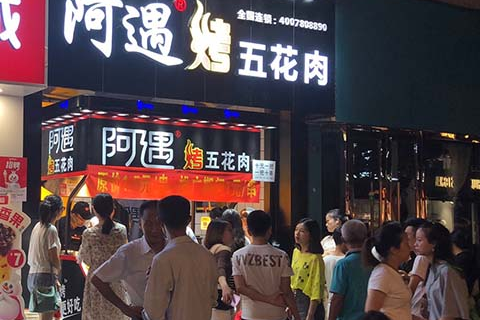 阿遇烤五花肉隶属于四川欣德宏餐饮管理有限公司正式成立于2017年,是一家专注于休闲烤串研发经营领域的全国性连锁餐饮企业,以弘扬四川美食文化为己任,集食品加工、调味品生产、冷链配送、市场运营为一体的餐饮管理及咨询的专业餐饮品牌公司!