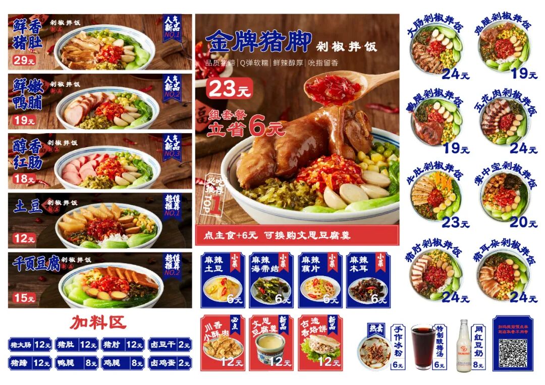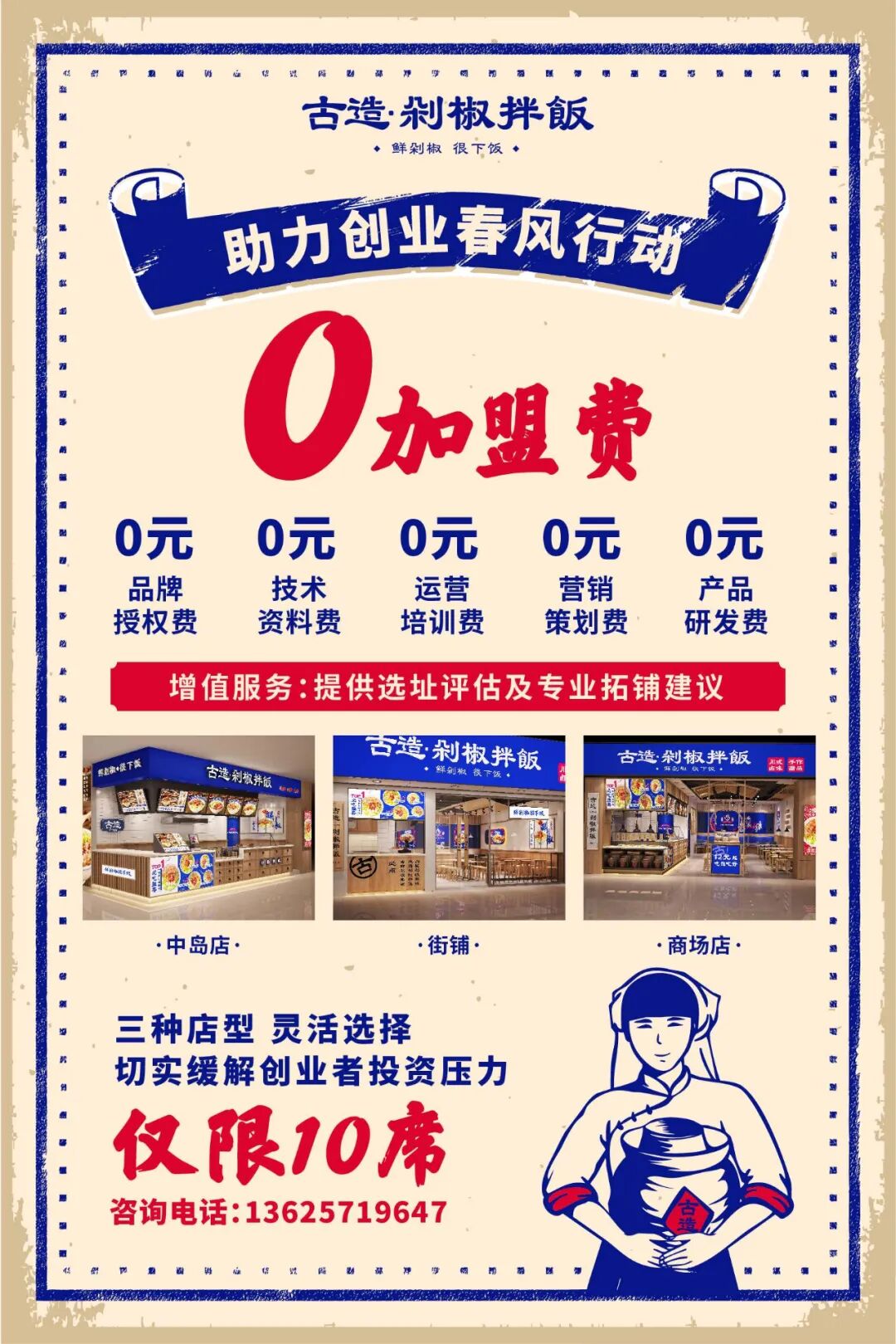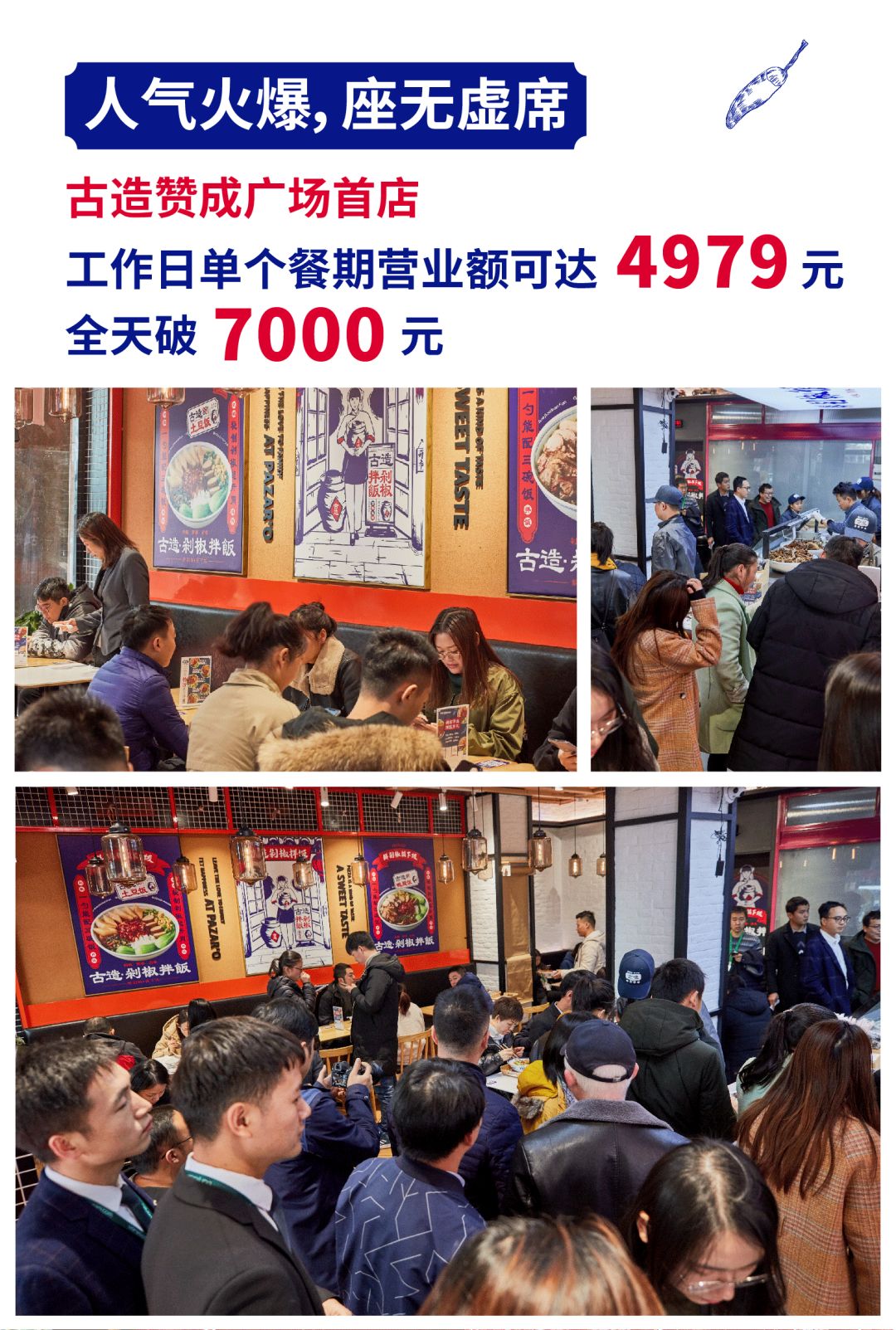 古造•剁椒拌饭品牌:【古造•剁椒拌饭】1、基本投资额(堂食店):25-30万元2、店铺面积要求:35-75m²3、预估客单价:25