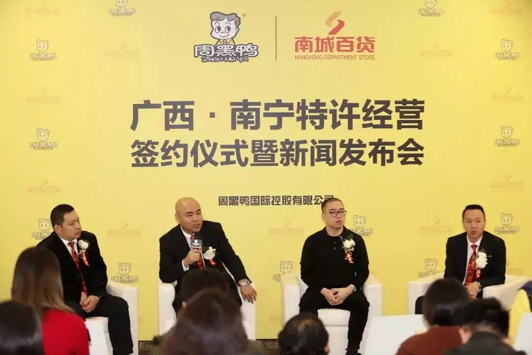 2019年11月18日,周黑鸭在总部武汉举行特许经营签约新闻发布会,正式宣布启动特许经营,将商业模式升级为直营+特许经营模式。