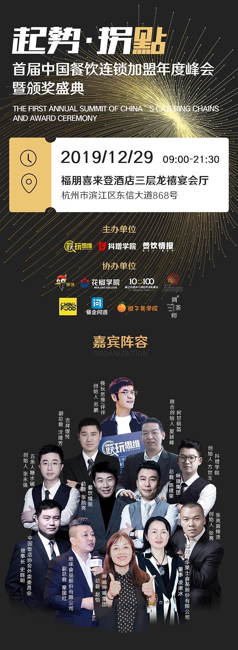 作为国内最具传播声量和辐射面的餐饮产业媒体、餐饮上中下游企业发声和舆论引导重要阵地、餐饮上中下游产业链深度原创干货内容生产商、餐饮产业链从业者思维启迪和认知提升的首选入口,筷玩思维与CHINA FOOD致力于见证和推动连锁餐饮未来十年黄金发展时期的整个变革历程。一个餐饮品牌从多家门店到连锁化经营,靠的是“增长模式”和对“增长模式”的维护、落地和升级,市场也总是告诉我们,企业各个发展阶段的经营逻辑是不同的,对于连锁型(直营/加盟)餐饮品牌而言,我们认为2019年是起势和拐点之年,餐饮连锁化的势头已起、拐点已至。基于上述思考,12月29日,一场以“起势•拐点”为主题的首届中国餐饮连锁加盟年度峰会暨颁奖盛典于近日正式启动。