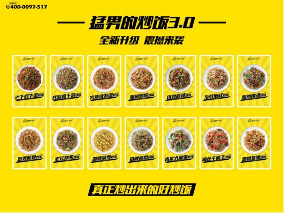 产品层面,3.0升级更聚焦产品,强调“现炒”概念。Slogan 也从以往的“每粒饭饱满爱”变为了“真正炒出来的好炒饭”。