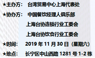 为了让大家更加了解台湾贸易中心的服务,台湾贸易中心上海代表处将于11月30日举办「2019年台湾贸易中心服务说明会」,邀请两岸相关协会和企业与会。说明会特设欢迎酒会环节,以期为与会业者创造自由交流的机会。