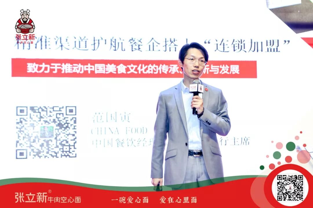 范总向大家表示说CHINA FOOD在致力于推动中国美食文化的传承、创新与发展的道路上一直不懈努力,更是送上对升级后的“张立新牛肉空心面”未来的祝福愿景,明年三月,“张立新牛肉空心面”将全新亮相第七届CHINA FOOD上海国际餐饮美食加盟展。