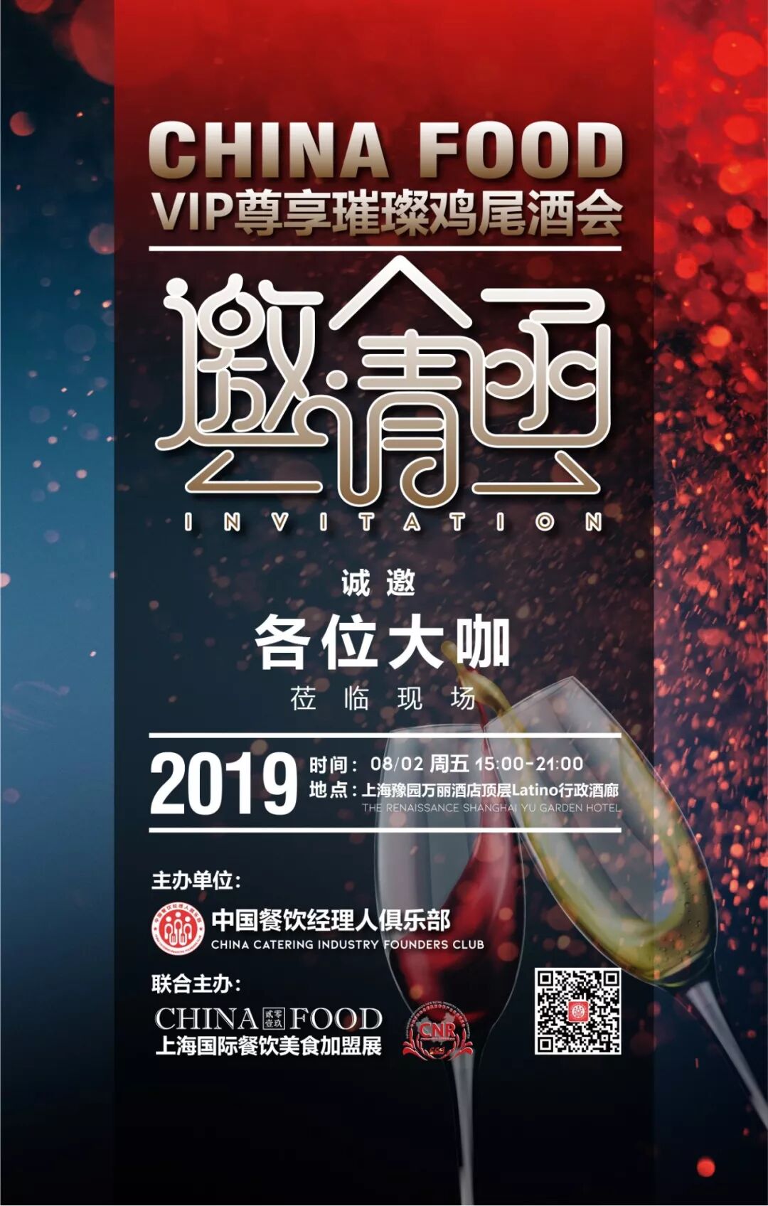 邀中国•上海CHINA FOOD VIP尊享璀璨鸡尾酒会时间:2019.8.2号(本周五)地点:上海豫园万丽酒店顶层行政酒廊一尊敬