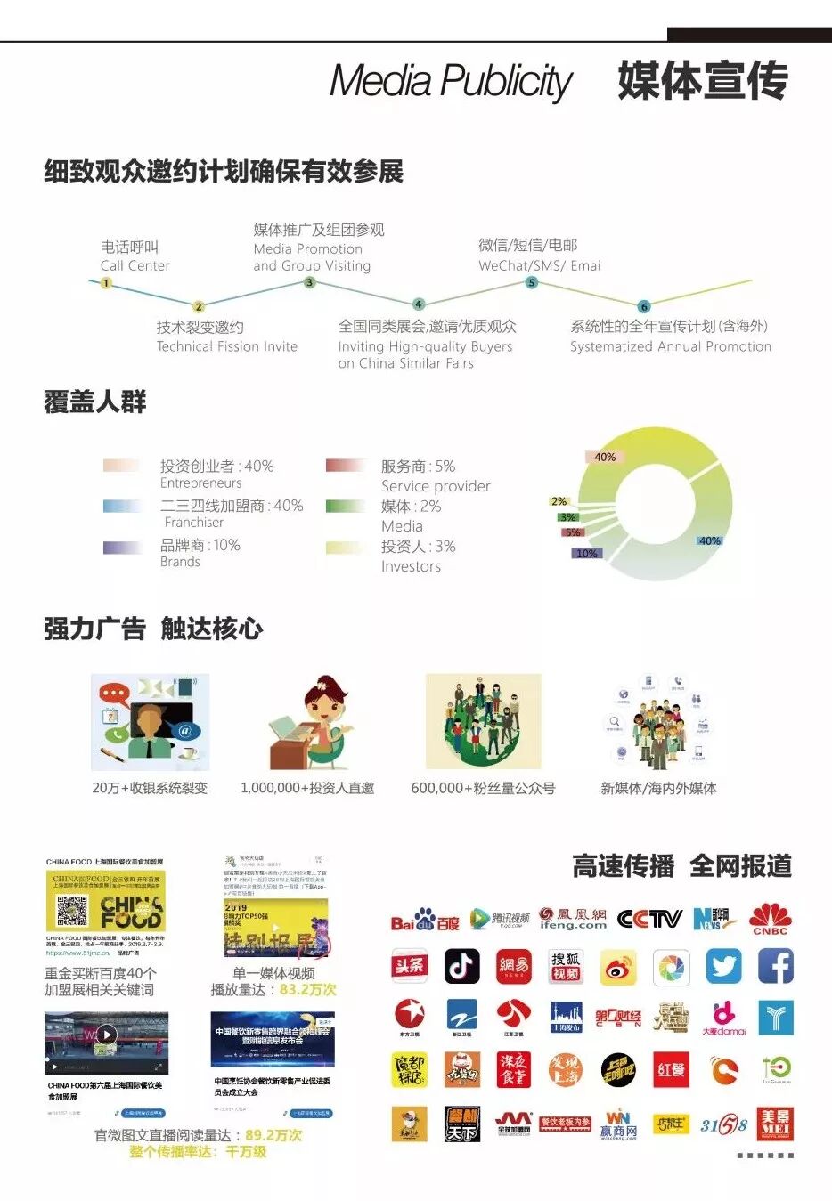 选择有自己餐品特色的品牌:“舌尖”推荐品牌阿甘锅盔、西贝旗下品牌张爷爷空心面、国际咖啡领军品牌香记咖啡、鸡尾酒顶尖品牌RIO。也是因为这些品牌的到来,使得每一届的CHINA FOOD展会现场都吸引了大量的投资人和投资企业,在餐饮圈构建了一个值得信任的桥梁。每年3月上海举办。以推动餐饮企业的品牌化、连锁化、规模化为核心,构建餐饮企业和投资人的合作交易平台。