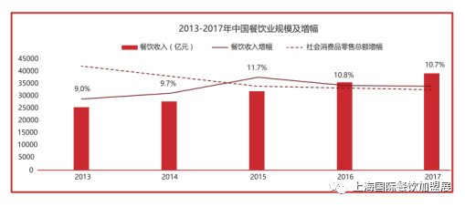 餐饮行业实现连续三年两位数增长,规模接近4万亿。