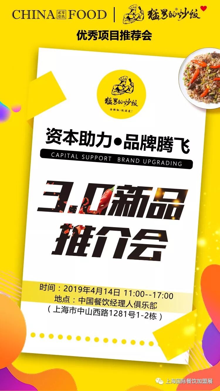【资本助力】4月14日,猛男的炒饭3.0新品推介会,邀您来品尝