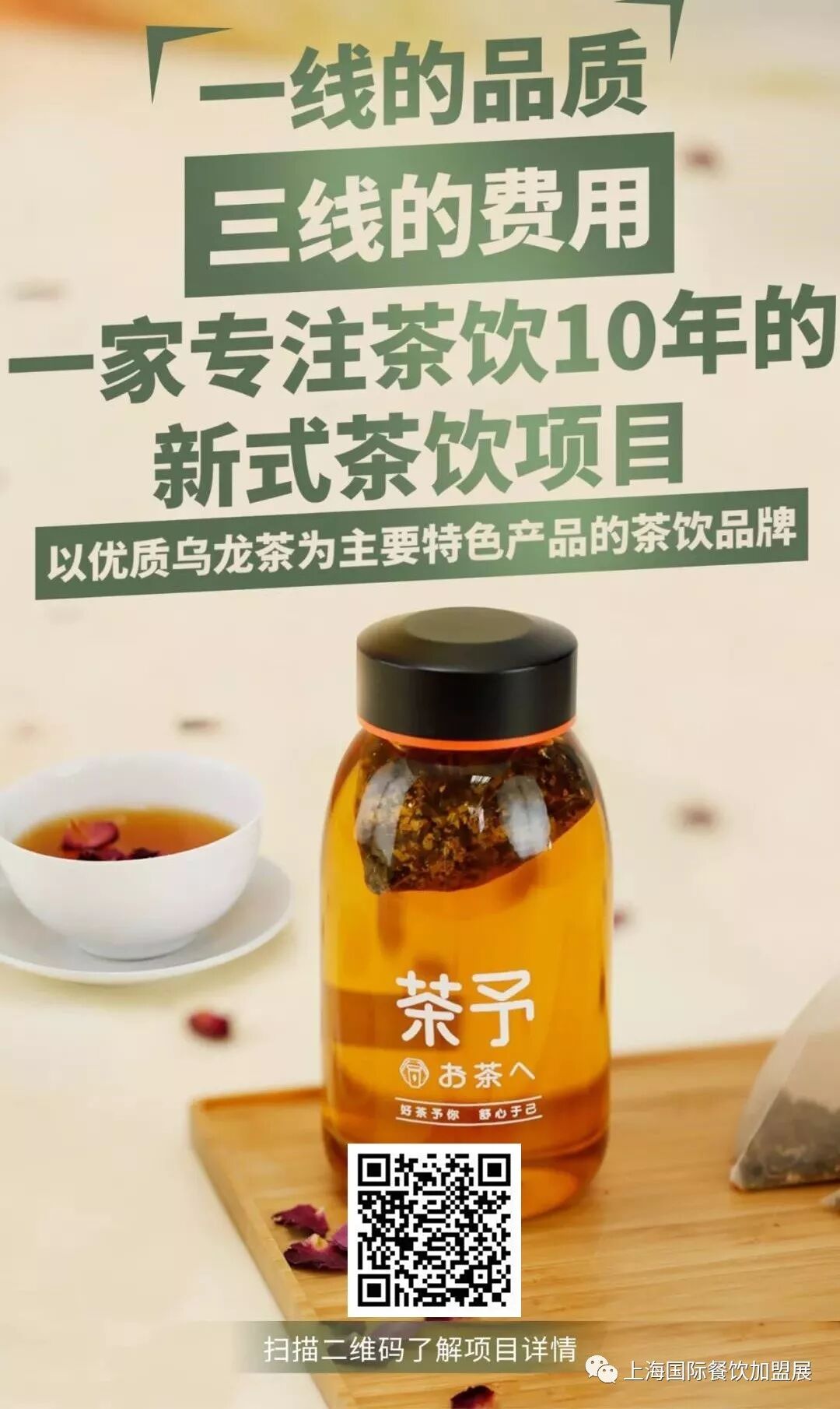 同时,通过CHINA FOOD签约的小伙伴前10名签约或交定金,还可以再减免首年管理费5000元和设计费3000元。想要从事餐饮,喜爱奶茶的听友们,可以通过扫描二维码了解项目进行报名。
