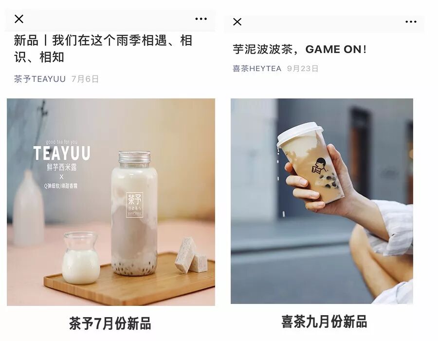 茶予在7月份上线了鲜芋牛奶的产品,到了9月份喜茶、奈雪等知名品牌才开始上新,可见茶予在研发上有着引领奶茶潮流的能力。
