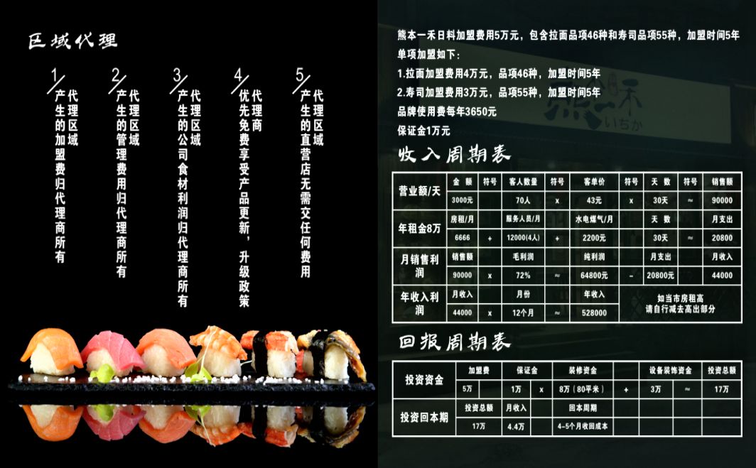 现拥有技术精湛的服务团队,以卓越的服务品质,为不同的客户提供更完美优质的餐饮服务。辽宁熊本一禾餐饮管理有限公司不同于国内其他的料理店,是自创的品牌,经过了5年的研发,菜品超过160种。