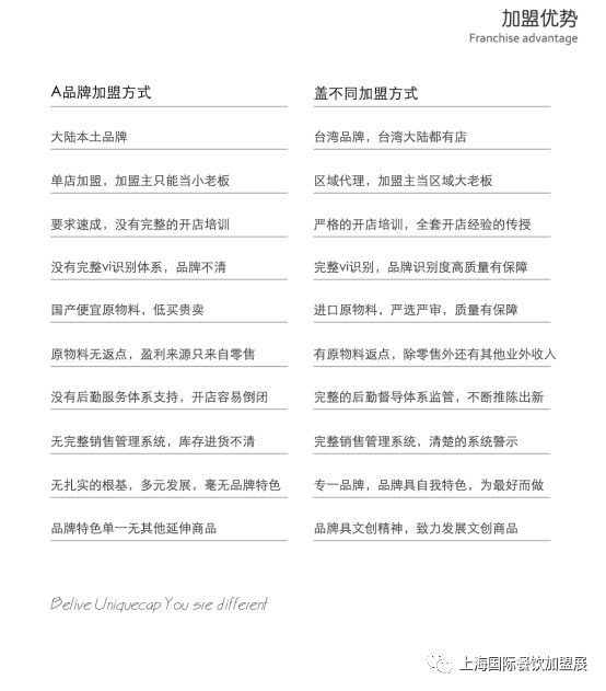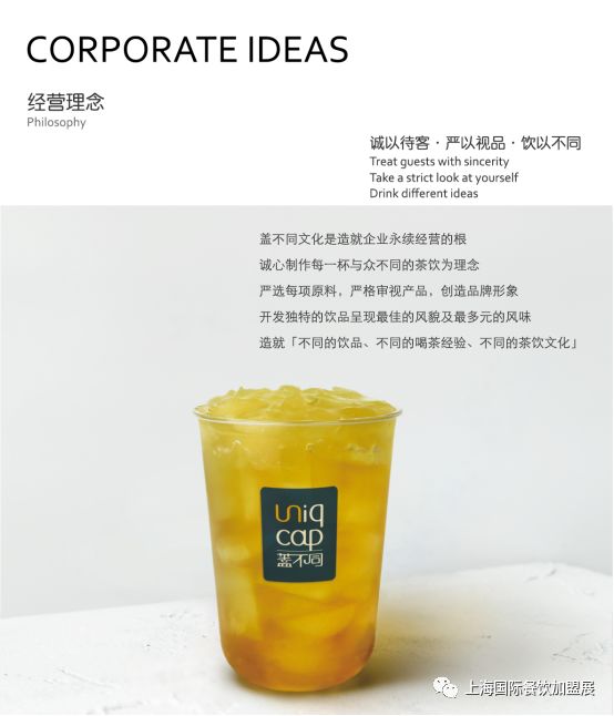 做出最好喝的珍珠奶茶是品牌的使命,精益求精只是要再次超越自己,“盖不同”代表品牌所追求的创意生活态度 (“U”Lifestyle ),从茶饮与生活中发掘独特创新精神。“盖”同时是“最”的意思,盖不同对每个产品、每个细节,都展现热情,做到最好。