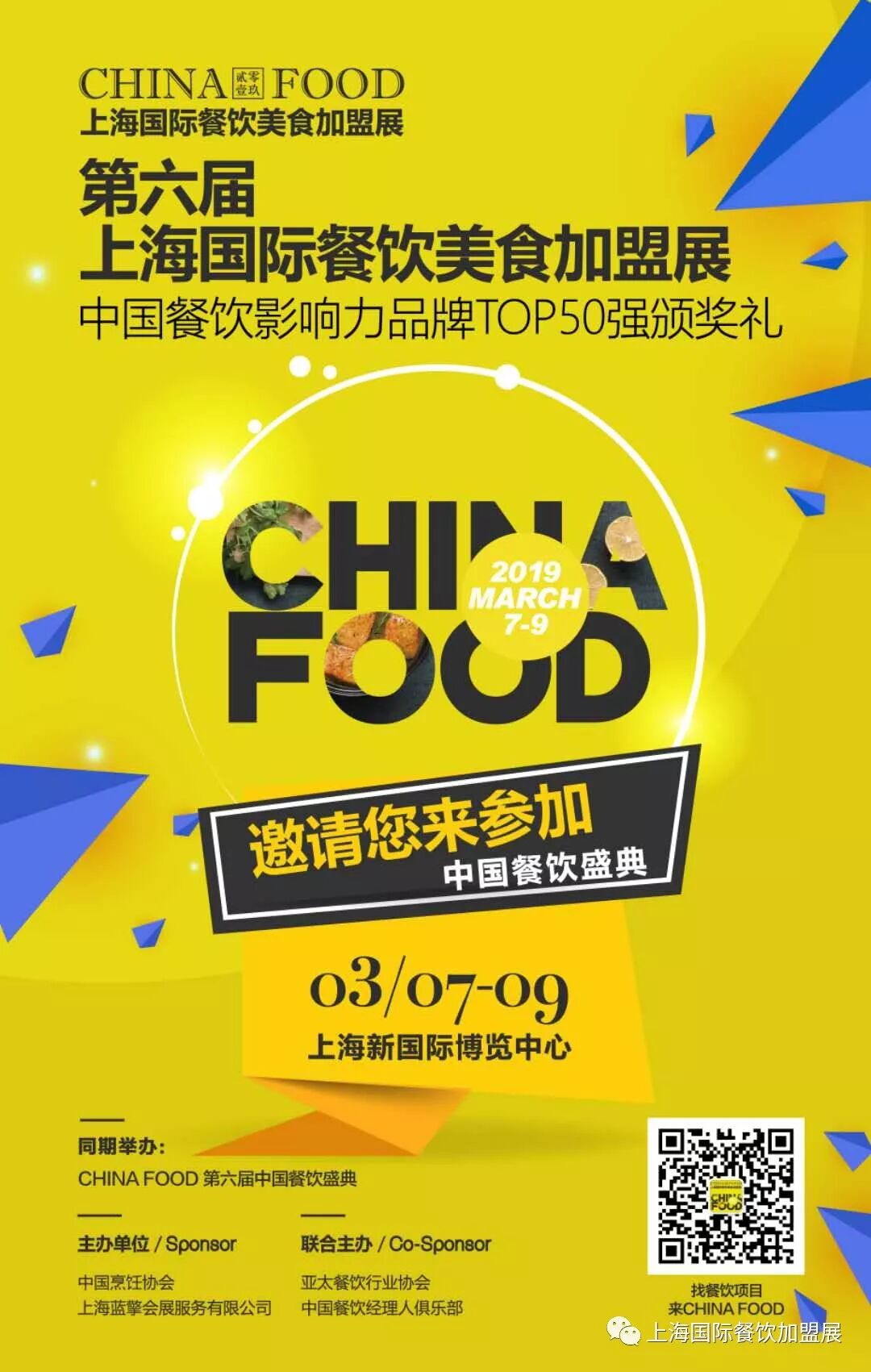 上海国际餐饮美食加盟展CHINA FOOD 20193月7日-3月9日上海新国际博览中心W2馆200+展商18000㎡面积50,0