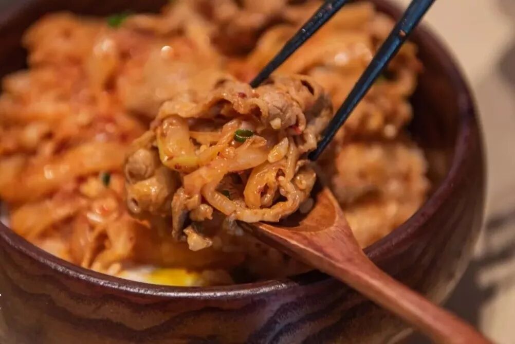 在这家店还能尝到韩国的泡菜肥牛饭,肥牛的油腻配上泡菜的酸爽,不再需要其他调料,浓郁的咸鲜味就可全部释放。