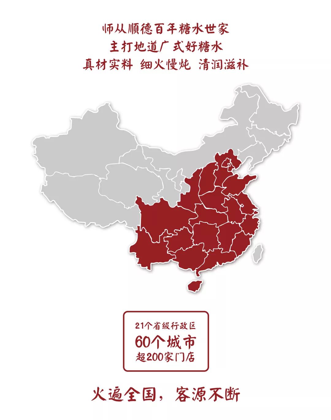 五条人糖水铺洞悉目前国内餐饮行业市场现状,针对广式糖水进行研发,师从顺德百年糖水世家,主打健康养生的广式糖水甜品,覆盖各个年龄层人群。自2017年推出,迅速成为风靡全国的消费品牌,现今,全国已经拥有200多家门店。