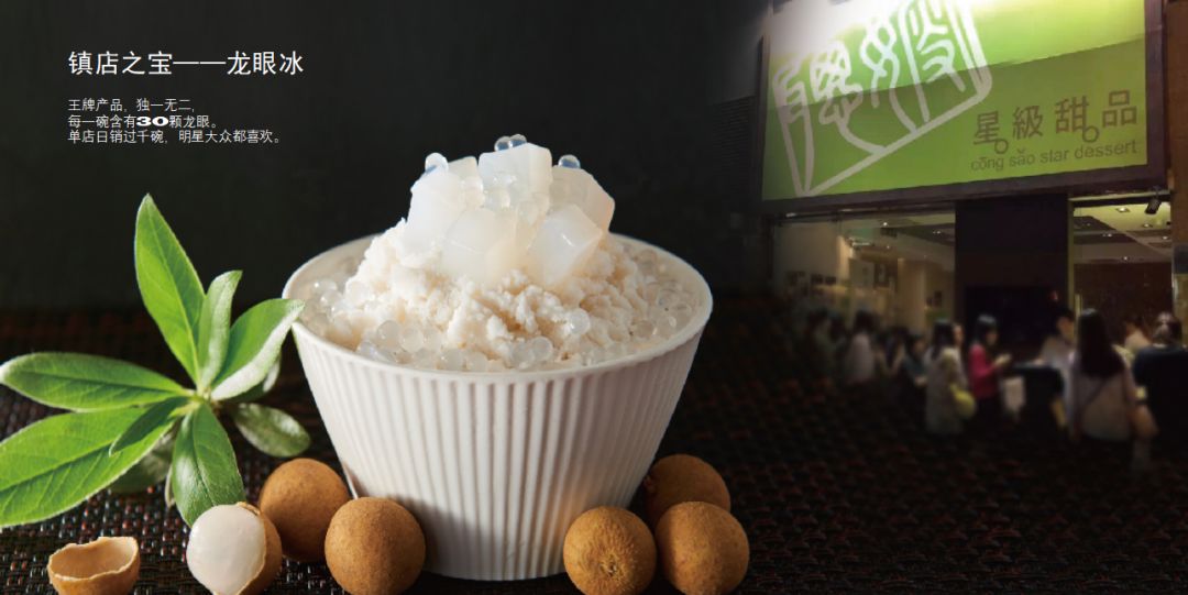 每一份龙眼冰都由新鲜泰国金带龙眼肉与优质鲜奶按照科学比例打制而成,攻克了龙眼肉极难保鲜的问题,锁住龙眼天然香气与清甜,让人欲罢不能。之后,在众多名人及顾客的追捧下,相继在坑口、宝琳等地开设门店,并由香港天王刘德华先生亲笔提字,成为游客到港必吃的甜品。如今,“一碗带着爱心的甜品、一个传播幸福的品牌”已成为”聪嫂聪少”践行的理念,势必将甜品上千年的文化,辅以现代科学的方式,带给顾客切实的爱和幸福感。