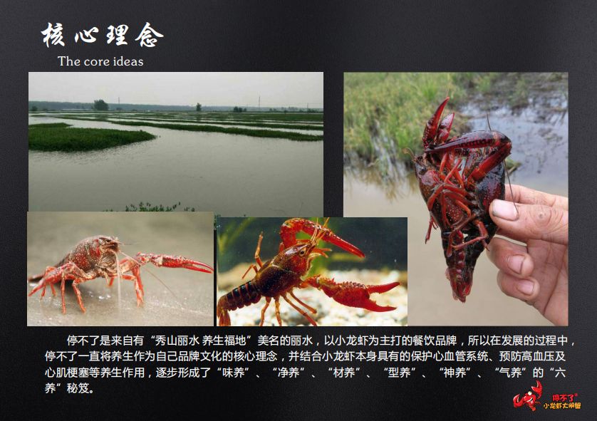 在发展过程中停不了一直将养生作为自己品牌文化的核心理念,并结合小龙虾本身具有的保护心血管系统、预防高血压及心肌梗塞等养生作用,逐渐形成了“六养秘笈”