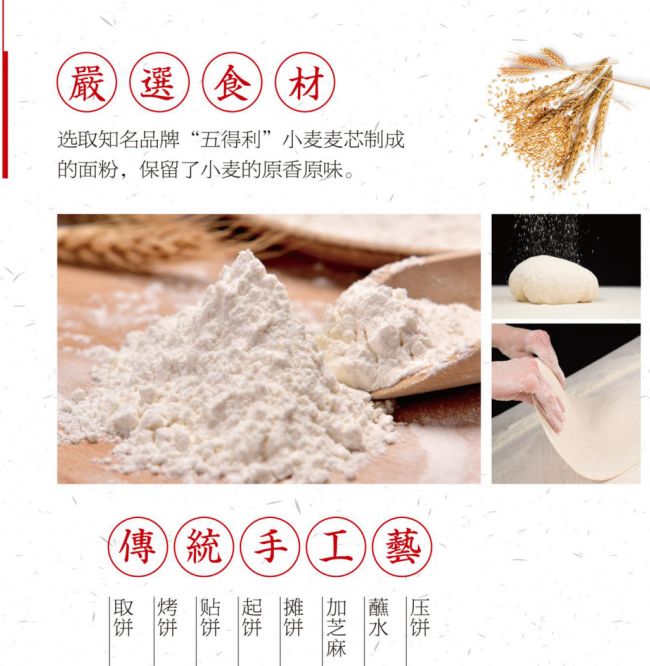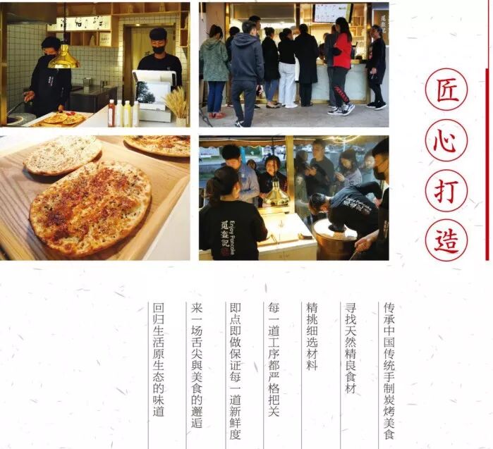 CHINA FOOD 推荐品牌 传承中国传统手制炭烤美食精挑细选,寻找天然精良食材使用知名名牌“五得利”小麦麦芯制成的面粉,更大程