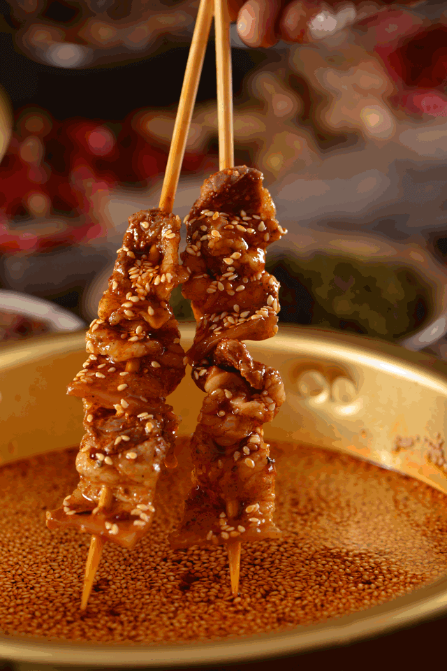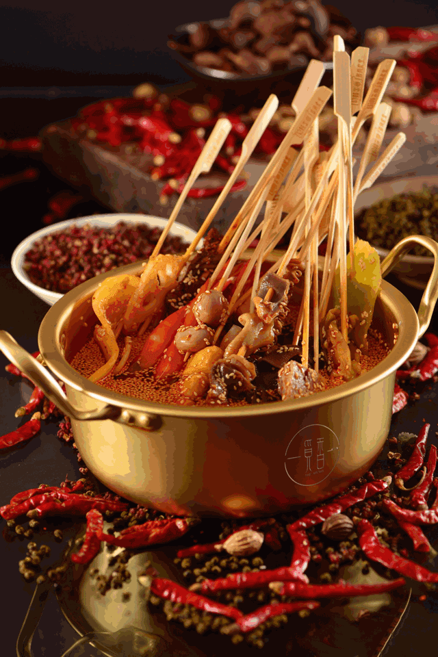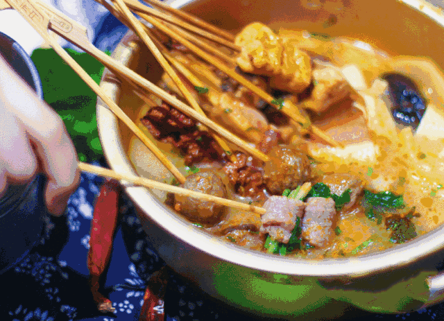 冷锅串串其实并不冷,锅面有热油封顶,起到一定的保温作用