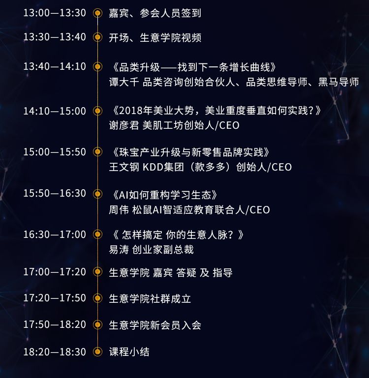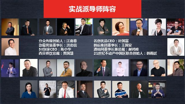 生意学院强大导师阵容包括行业明星、投资人、全国的创业创富者他们来自全国各地、甚至美国硅谷、遍布传统、新兴行业,教育、餐饮、零售等等。