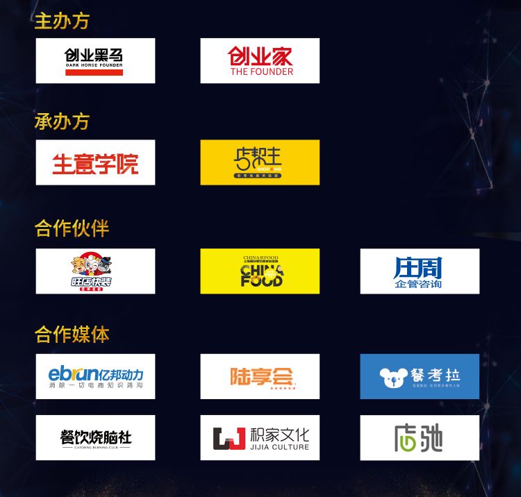 亿邦动力网、陆享会、餐考拉、餐饮烧脑社、积家文化、店驰