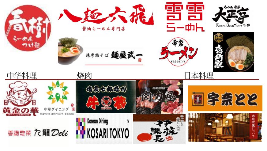 日本知名的创业辅导公司,与大阪王将,7-11便利店,牛角烤肉店等日本知名加盟品牌进行战略合作,拥有自己的加盟品牌,集团经营 31 家直营店,75 家加盟店。拥有中华料理,拉面,日料多种项目品牌。