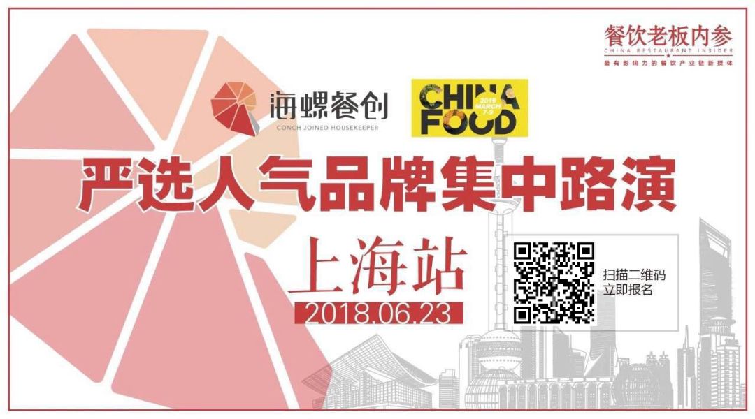 6月23日,本周六,CHINA FOOD,餐饮老板内参·海螺餐创,将在上海,举办第三期“严选项目全国巡展”,创业者可以一次性考察17个靠谱餐饮项目。
