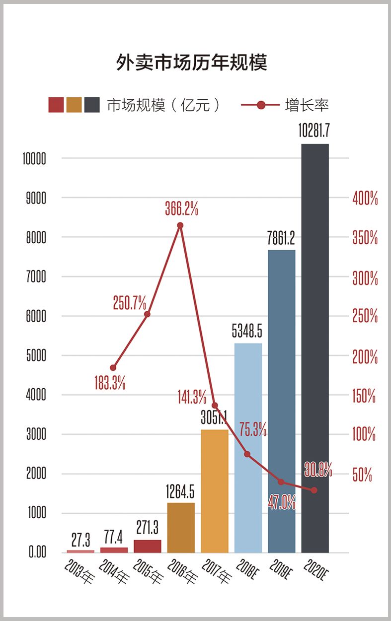 据《中国餐饮白皮书2018》,从2011年到2017年,外卖行业增长13.7倍。截至2017年底,美团店铺接入外卖服务的在线餐饮商户270万+,中国外卖商户接入率达三成,涵盖1600个城市。