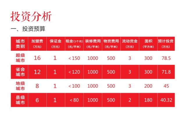 单店预估投资额:40-78万左右