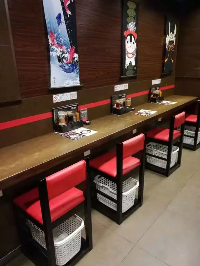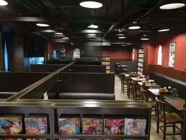 店铺整体色调以木色、黑色和红色为主调,入门处的门帘,满架子日本带回的原装漫画,一人食餐椅下的置物筐,无处不体现着日本文化中对极致细节的追求。