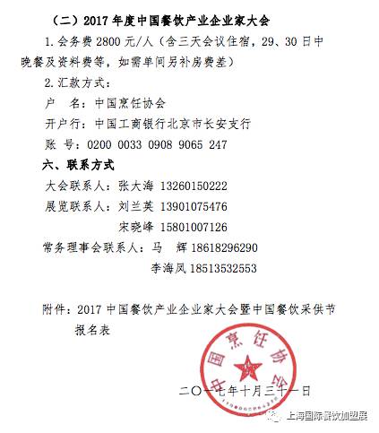 餐饮大事件 || 关于举办2017中国餐饮产业企业家大会暨中国餐饮采供节的通知