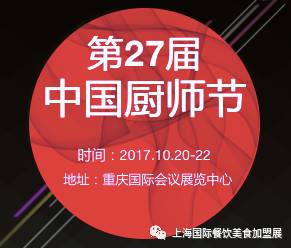 行业盛会 年终盛典 2017中国厨师节展会时间:2017年10月20-22日展会地点:重庆国际会议展览中心展会主办:中国烹饪协会、