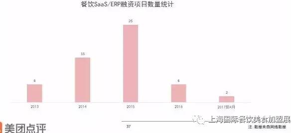 SaaS/ERP 类融资项目13年——15年剧增,15年高达26个,16年断崖式降低至6个;SaaS/ERP类创业公司功能类似,主要集中在收银、点菜、预定、排队几个功能。