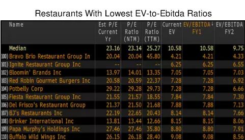 潜在的餐饮并购目标可能会是休闲餐饮连锁企业。自衰退出现之后,它们的表现落后于整个餐饮产业,客流明显减少,增长潜力受到限制。Bravo Brio、Ignite、Bloomin'、Red Robin、el Frisco's、BJ's和Brinker的“EV-Ebitda”(企业估值对比未计利息、税项、折旧及摊销前的利润)倍数低于8倍,再看近几年来企业连锁的并购记录,倍数介于8-10倍。尽管如此,它们缺少真正的资产,也无法创造足够大的协同机会,很难吸引潜在买家。
