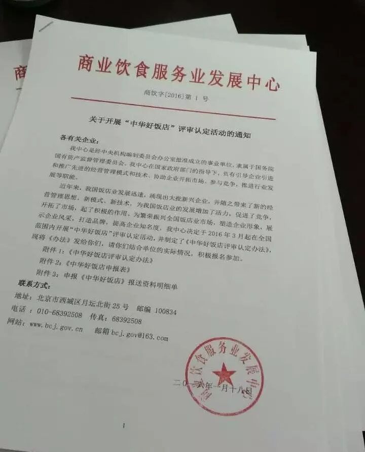 国资委商业饮食服务业发展中心正式批复CHINA FOOD 暨“中华好饭店”年度盛典