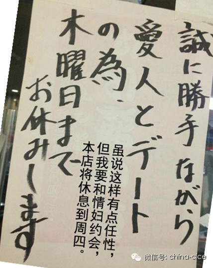 日本一些餐馆的临时休息告示,有的敬业,有的傲娇,有的逗比,也有的看完令人很心疼。但总的看下来,还是比中国餐馆任性一些。