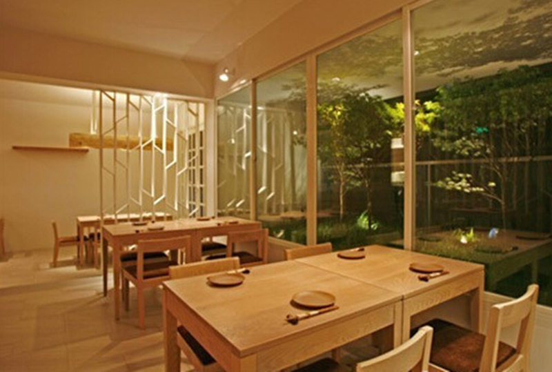 轻食别墅式日料餐厅——慕光日料便以此风格著称。充满清新自然风格,从一楼到三楼都有整体的庭院设计,每一层楼都有庭院景色,令人仿佛置身于那温暖自然的甜美家园中。清一色以纯色木质结构桌椅代替,大有欧系简约之风。