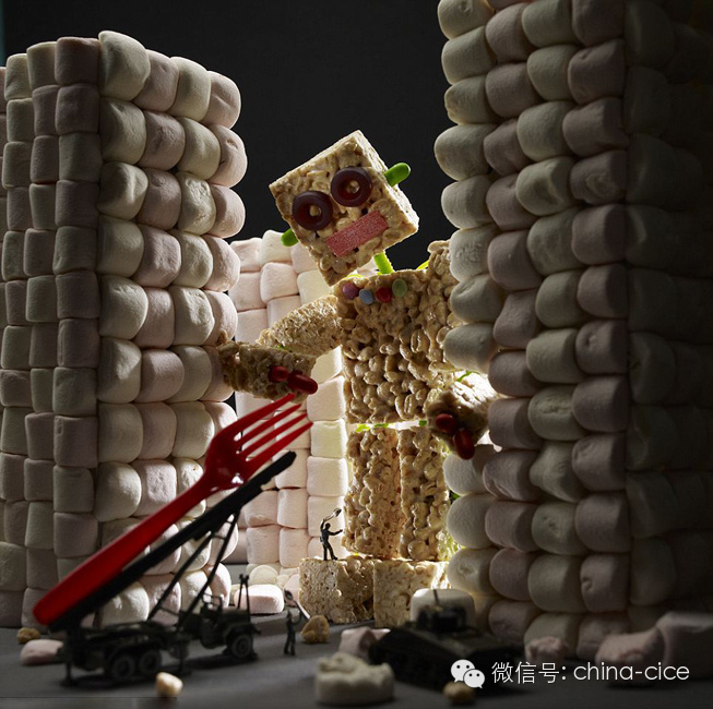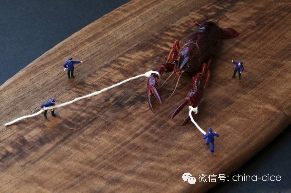 漂亮的花花草草,小鱼小虫微距摄影作品我们的看的多了,是否有些“审美疲劳”?而食品艺术家利用我们身边普普通通的食物,加上一些微型人偶,搭起了一个个精致的场景,通过相机的镜头将这些微小的场景放大,得到一幕幕我们生活中的精彩瞬间,其天马行空式的创意,看得也是醉了。