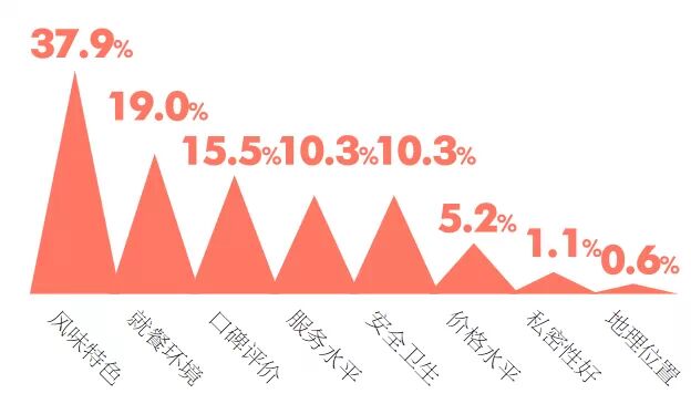 分析:口味与氛围是最食客最为关心的就餐因素,无疑味道是最为核心的竞争力。口碑、服务以及安全卫生是检验餐厅长久性的软性旗帜。