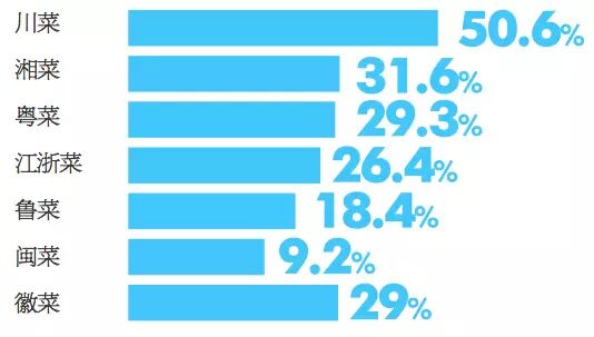 分析:食客对辣的痴迷,对浓厚口味的追求,直接显现在食客对菜系的选择上。