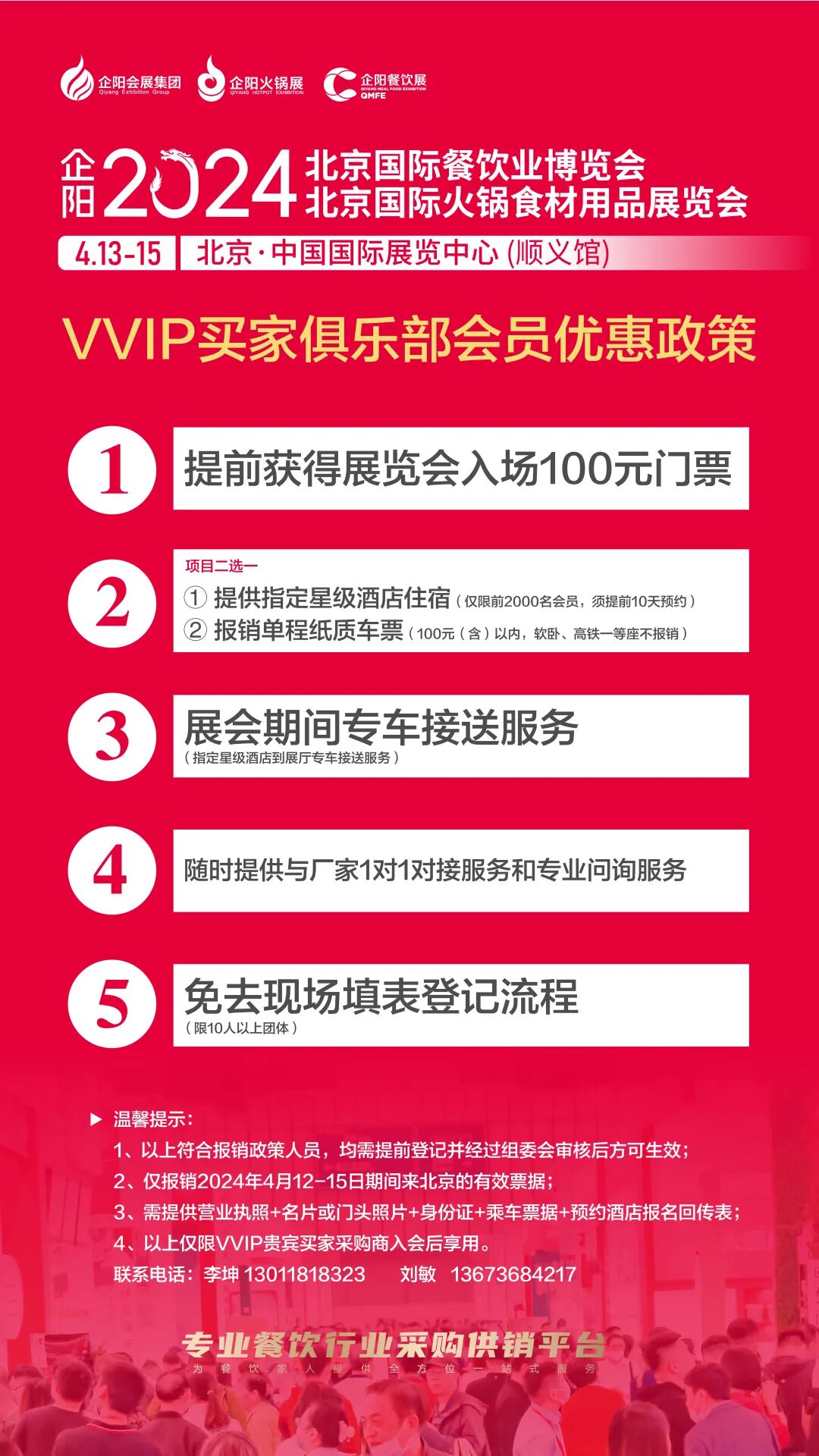 4月13-15日,中国国际展览中心(顺义馆),企阳2024北京餐饮展热烈欢迎您的到来!