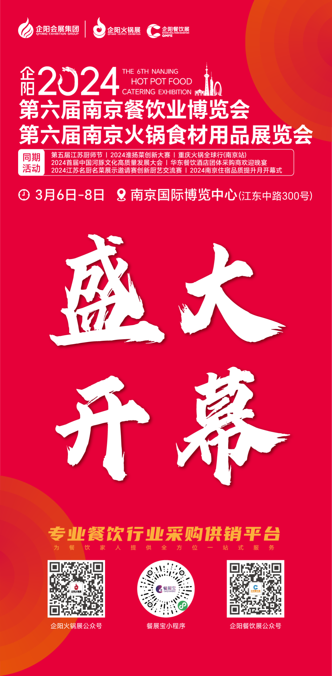 3月6日,企阳・2024第六届南京餐饮业博览会(简称:企阳2024南京餐饮展)在...