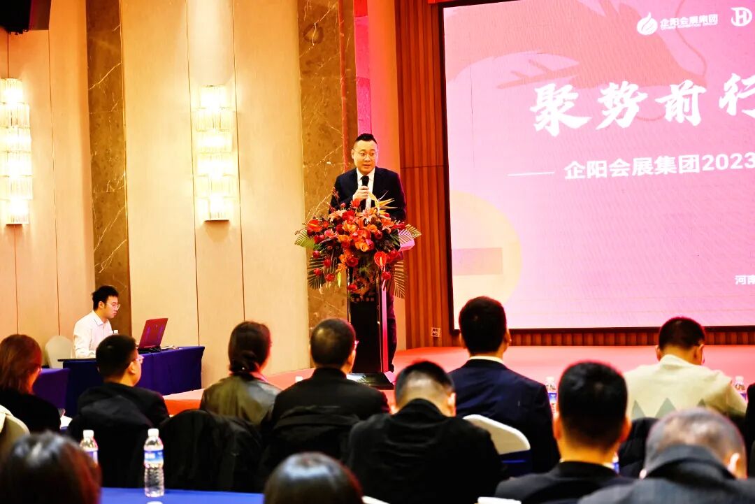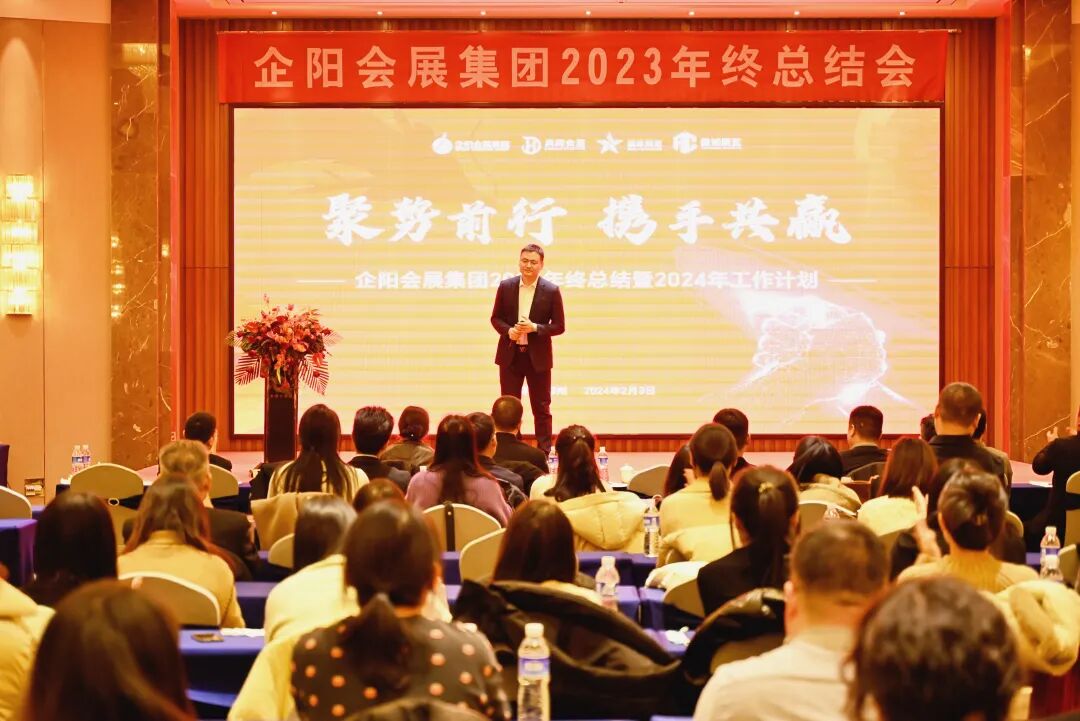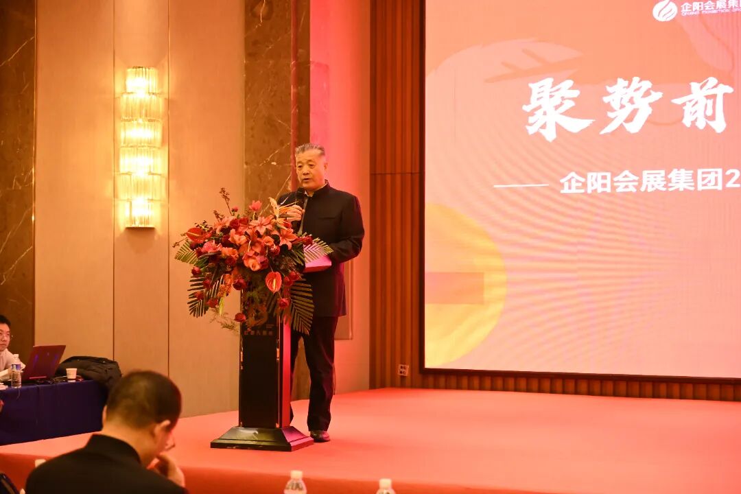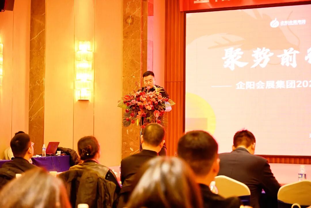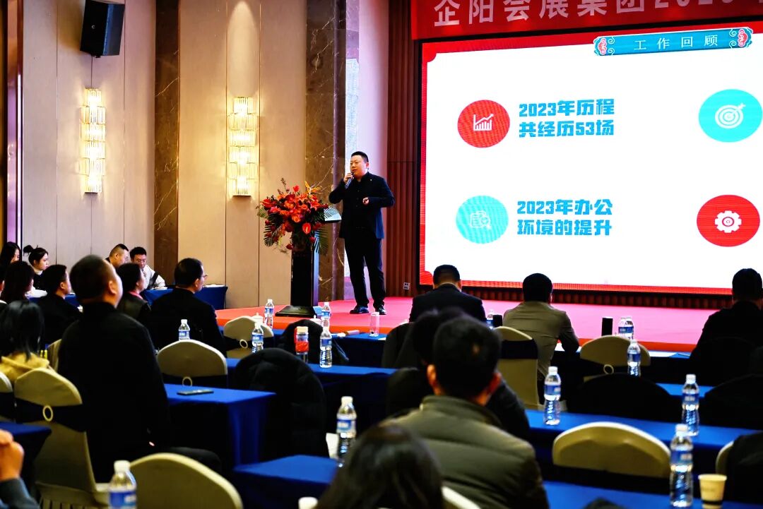董事长高原先生分享了企阳会展集团23年的工作总结,同时分析了当前面临的形式现状及阐述了24年集团的发展方向和规划。他表示企阳的今天离不开大家的不懈奋斗,希望2024大家继续再创辉煌,一起聚势前行,携手共赢。