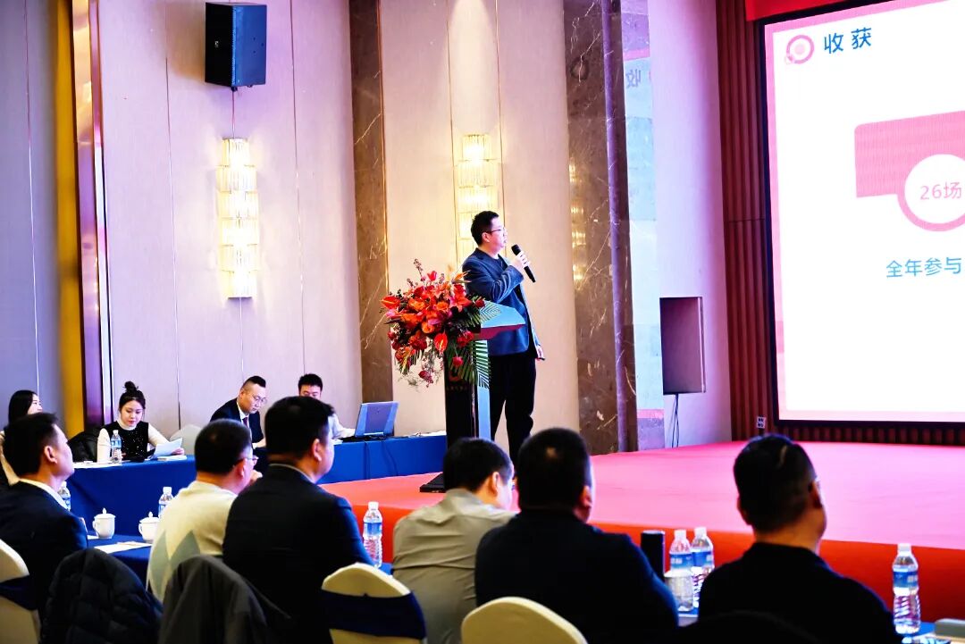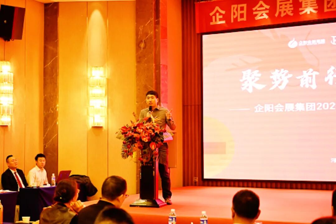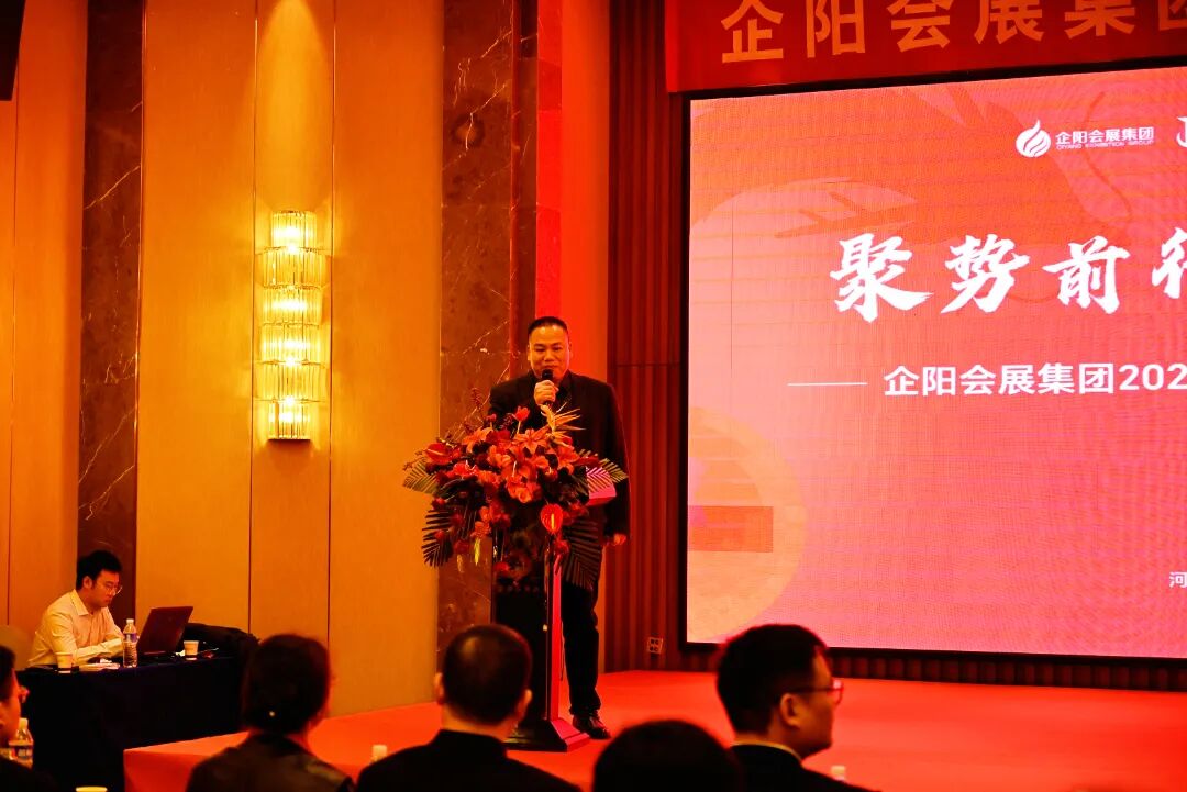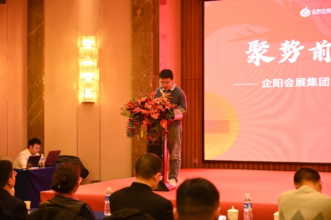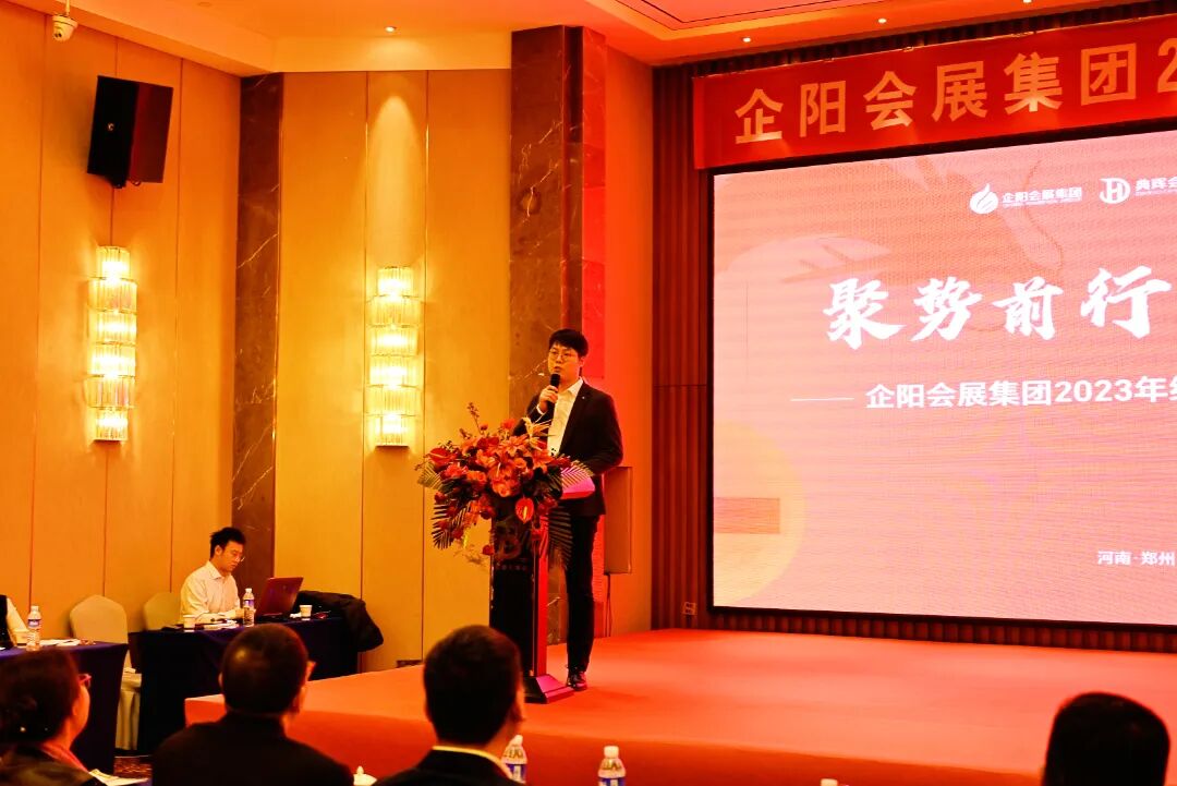董事长高原先生分享了企阳会展集团23年的工作总结,同时分析了当前面临的形式现状及阐述了24年集团的发展方向和规划。他表示企阳的今天离不开大家的不懈奋斗,希望2024大家继续再创辉煌,一起聚势前行,携手共赢。