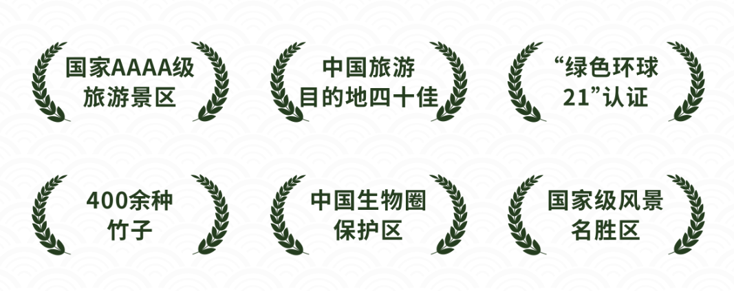 国家AAAA级旅游景区,国家级风景名胜区,中国旅游目的地四十佳,中国生物圈保护区,中国最美十大森林,最具特色中国十大风景名胜区,“绿色环球21”认证。