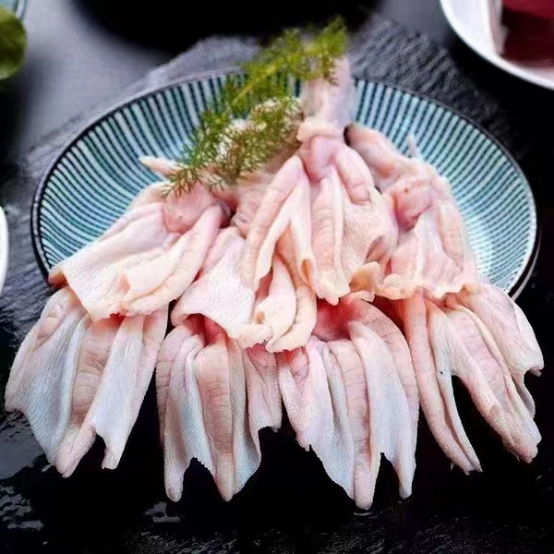 ④鸭掌:采用鲜鸭掌原料,手工去骨,口感筋道有嚼劲。鸭掌含有丰富的胶原蛋白,并且低糖,低脂。适合涮火锅、凉拌、卤各种吃法!